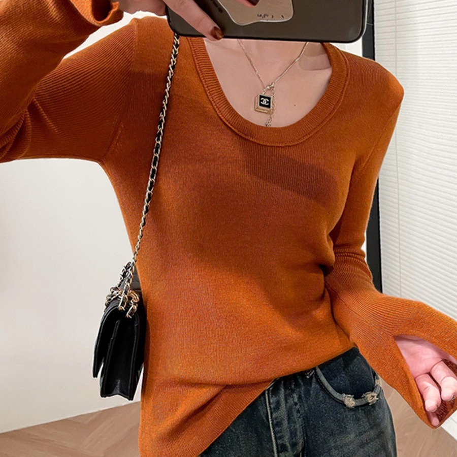 Korean style low round neck knitted bottoming shirt sweater women’s 2023 new wool slim fit inner top trendy 4188