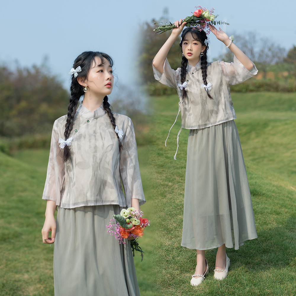 New Style Improved Chinese Element Suit Women’s Summer New Chinese Cheongsam Top Skirt Hanfu Tang Suit Two-piece Set