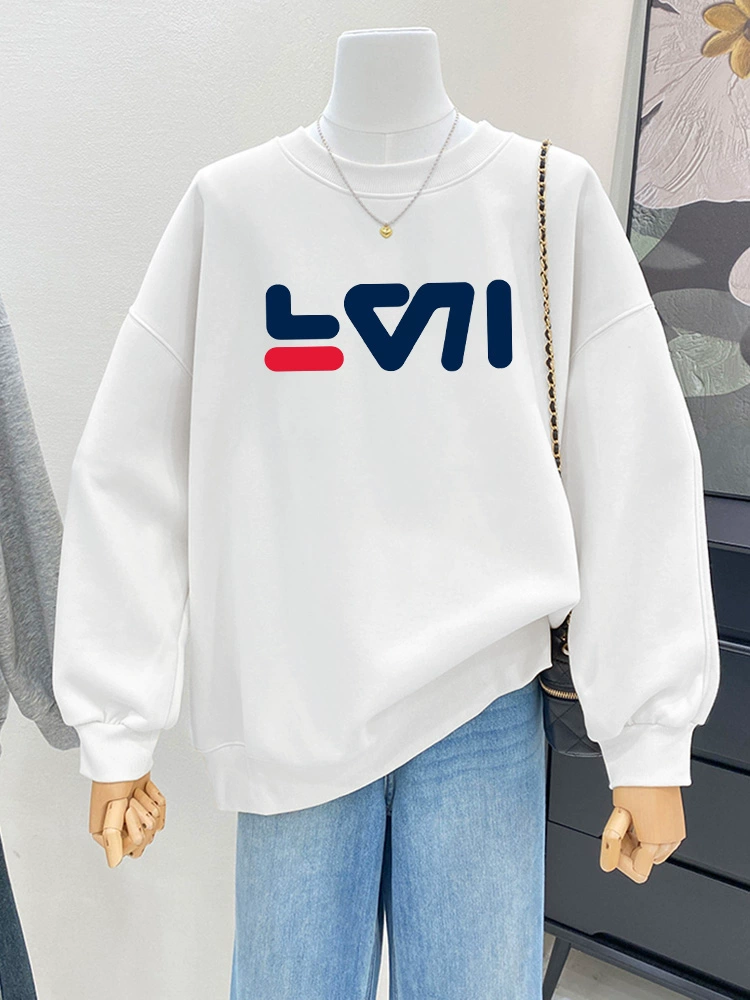 Black Spring and Autumn Popular Loose Large Size Round Neck Sweatshirt