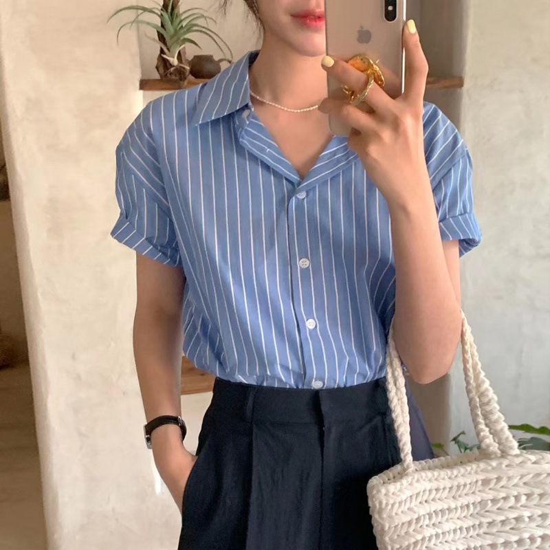 Professional Temperament Striped Short-sleeved Shirt 2024 Summer New Simple Casual Single-breasted Top