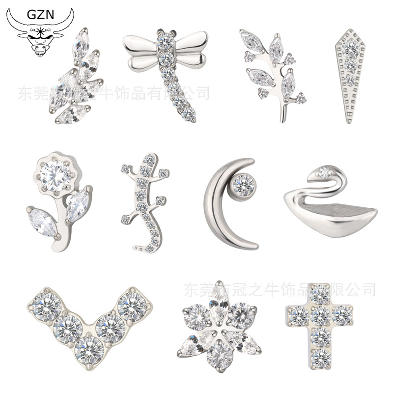 Crown cattle ASTM F-136 titanium alloy body puncture jewelry 0.9 inner teeth lip nail earnail soft bone nail spot