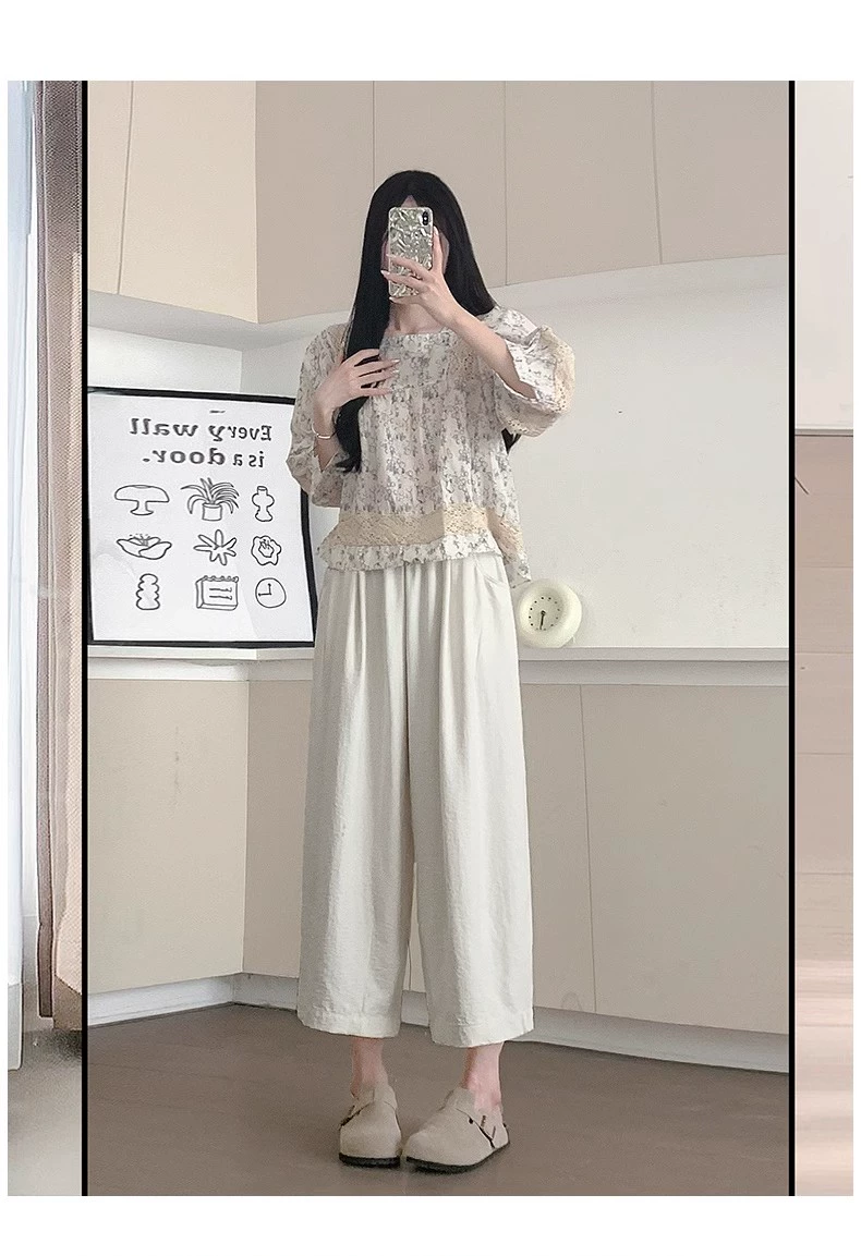 White ice silk loose little grandma casual pants