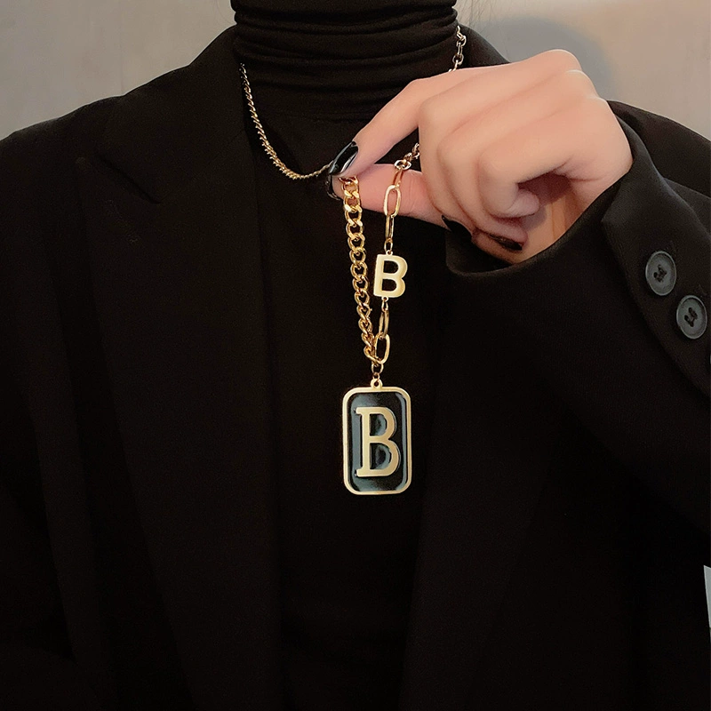 B letter sweater chain 2021 new trend jewelry long square brand pendant hiphop hip hop street necklace