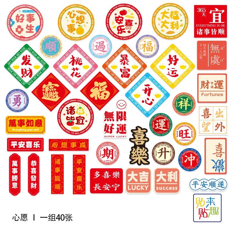 40 pieces of Chinese style and national trend wish laptop stickers, personalized skateboard electric vehicle helmet water cup stickers, waterproof