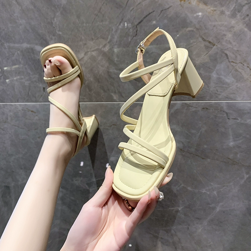 Summer thick heels gentle and versatile fairy -style sandwood sandals