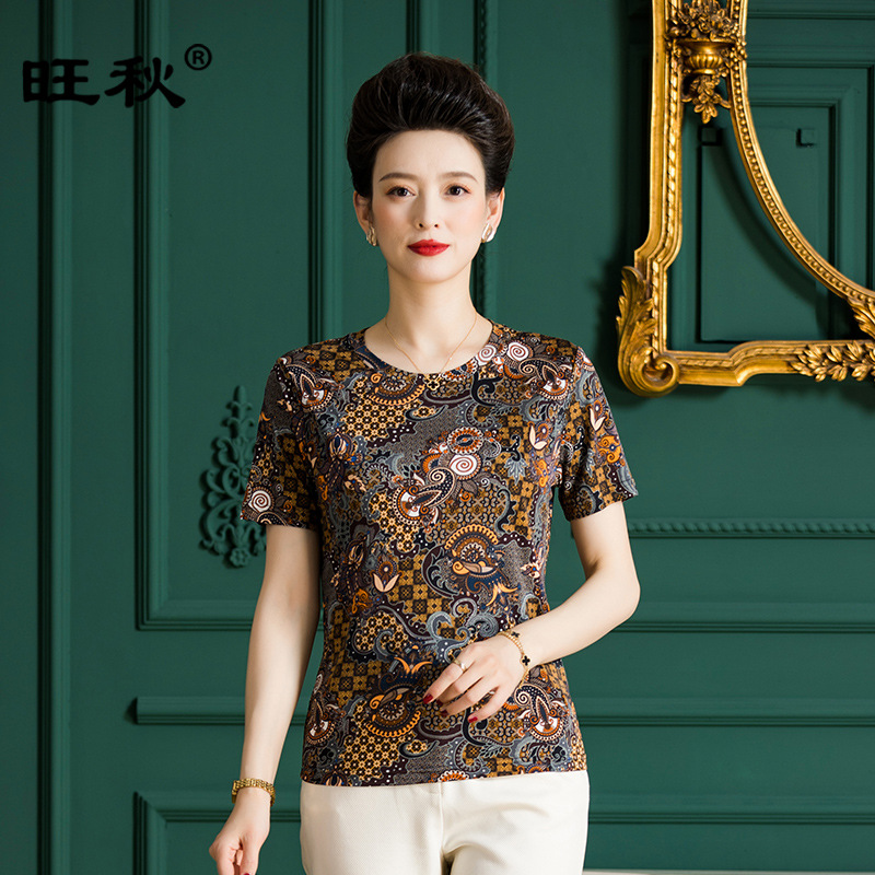 Factory wholesale mulberry silk new printed short sleeve T-shirt women’s thin knitted top round neck silk top F2862