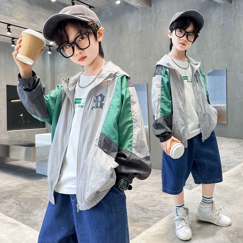 Boys’ Sunscreen Clothing Summer Coat 2023 Middle and Big Children’s Sunscreen Clothing Lightweight Skin Clothing Children’s Air-conditioning Shirt Korean Style
