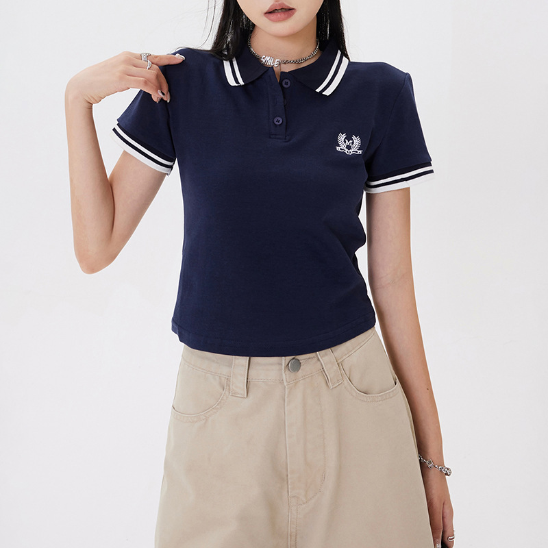 Beaver House# polo Collar Short Sleeve T-shirt Academic Style Design Embroidered Contrast Color Short Sleeve Casual Joker Slim Shirt