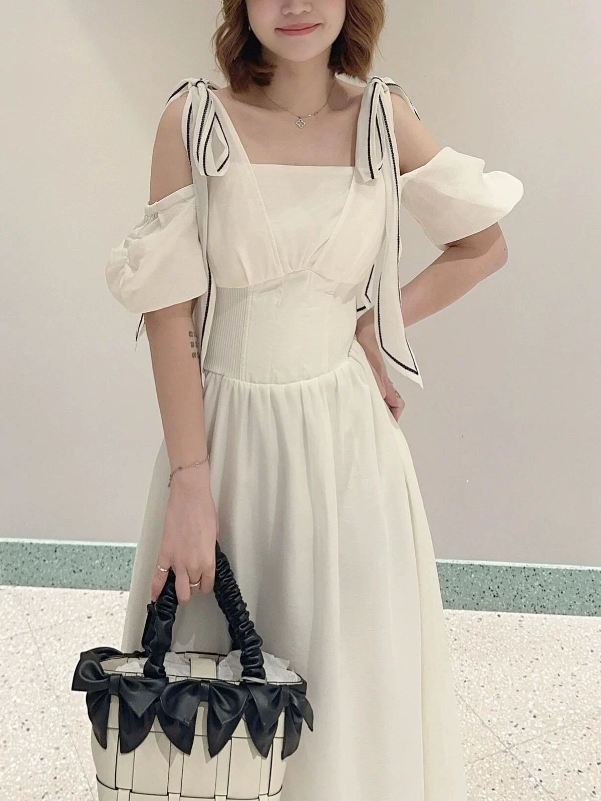 Grapefruit girl’s sweet off-shoulder dress with bow ties