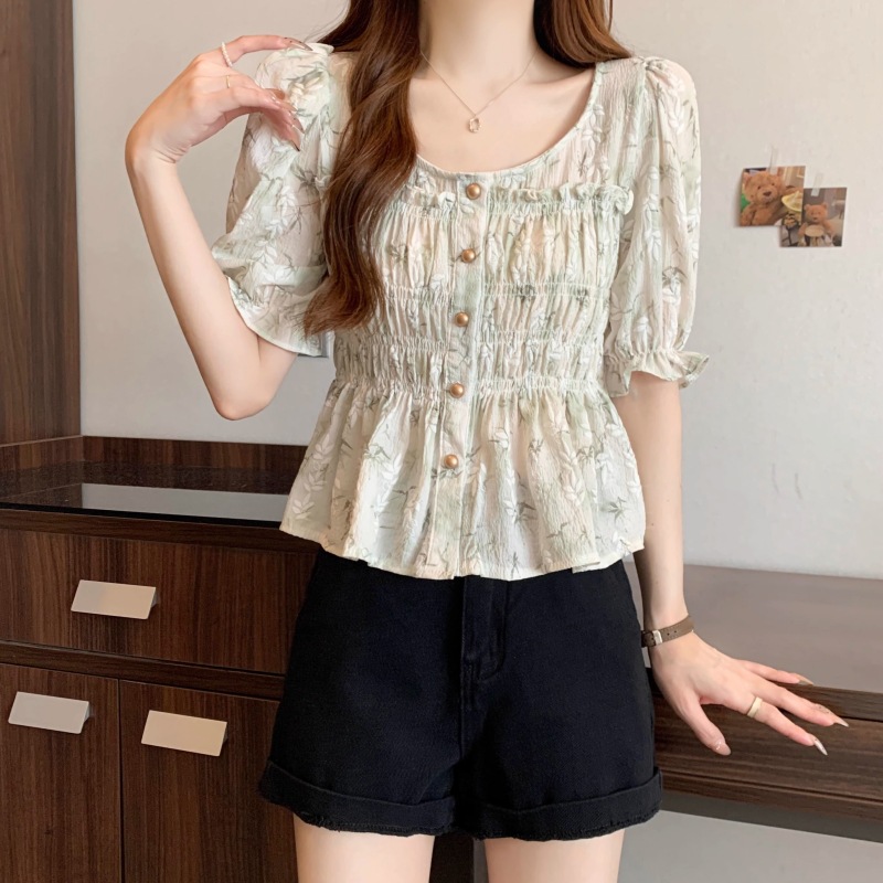 French Floral Chiffon Shirt 2024 New Women’s Short-sleeved Summer plus size chubby girl Slimming Elegant Chanel Style Top