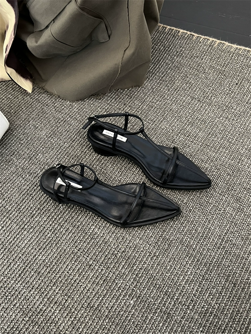Internet celebrity Korean style silver pointed toe thick heel buckle sandals