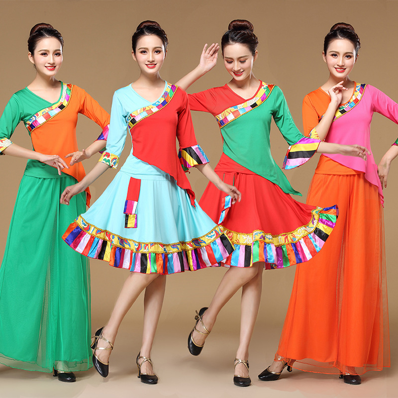 Spring and Autumn New Square Dance Dress Tibetan Suit Middle-aged and Elderly Mesh Pants Large Dress