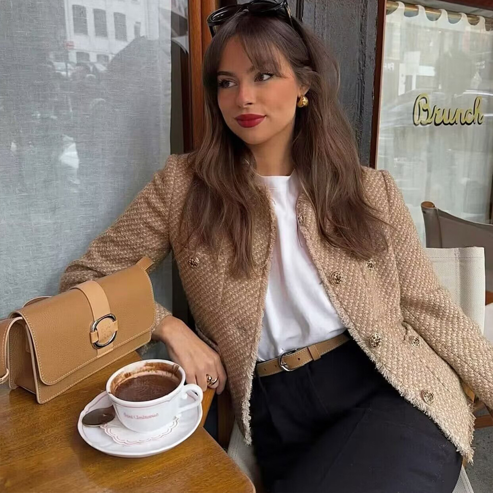 2023 Spring and Autumn new women’s jacket European and American style loose long sleeve metal button pocket decoration woolen coat
