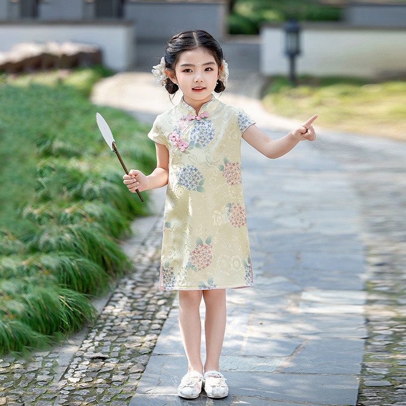 Huatang 24 Summer New Cheongsam Dress Baby Dress Children’s Dress Ethnic Style Hanfu National Style Tea Art Fairy