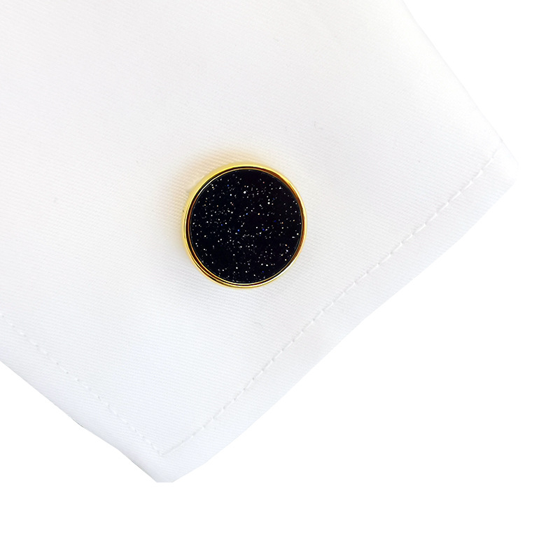 Dongguan Simple Round Star Blue Sand Stone Cufflinks French Shirt Cufflinks High-end Gemstone Cufflinks Cross-border Supply