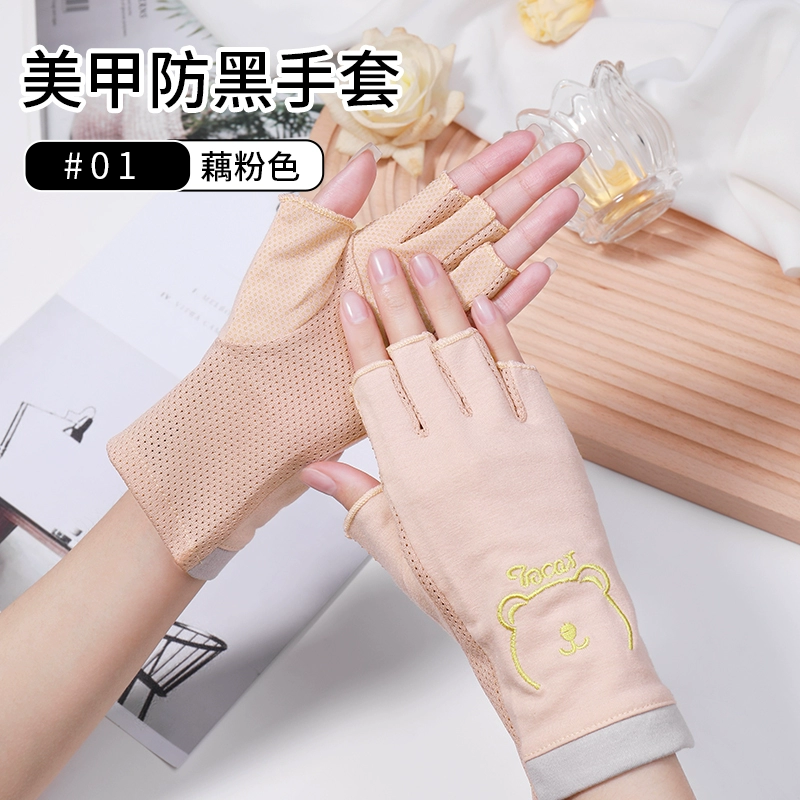 Armor sunscreen glove UV prevention black anti -radiation semi -finger thin protective dew finger lighting dedicated to nails