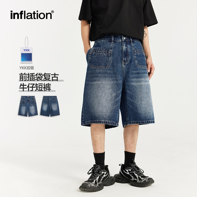 INF Men’s | Front Slip Pocket Retro Denim Shorts Spring and Summer 2024 New Fashion Brand Street Personality Straight Shorts