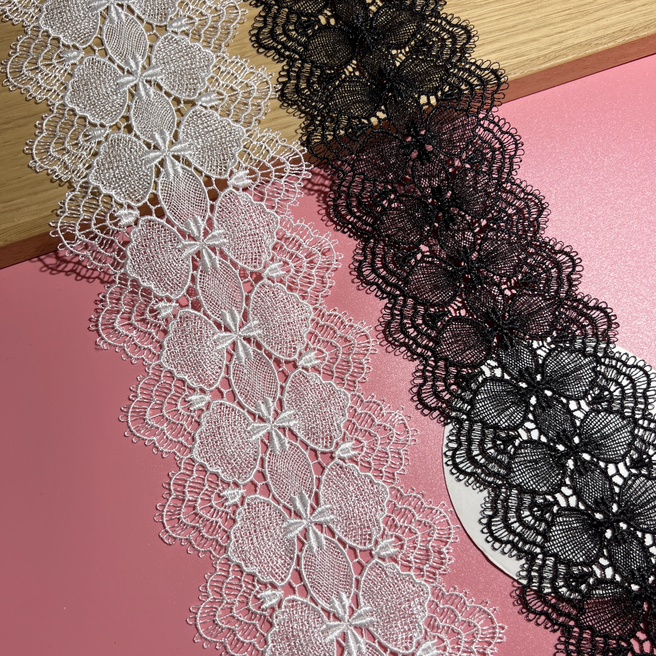 Black and white thin line double-sided phantom bow flower lace embroidery water-soluble barcode lace/DIY clothing accessories
