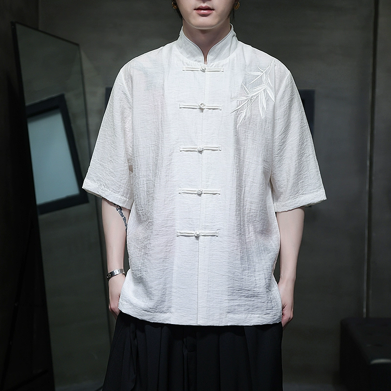 New Chinese style ice silk large size embroidered Tang suit short-sleeved shirt