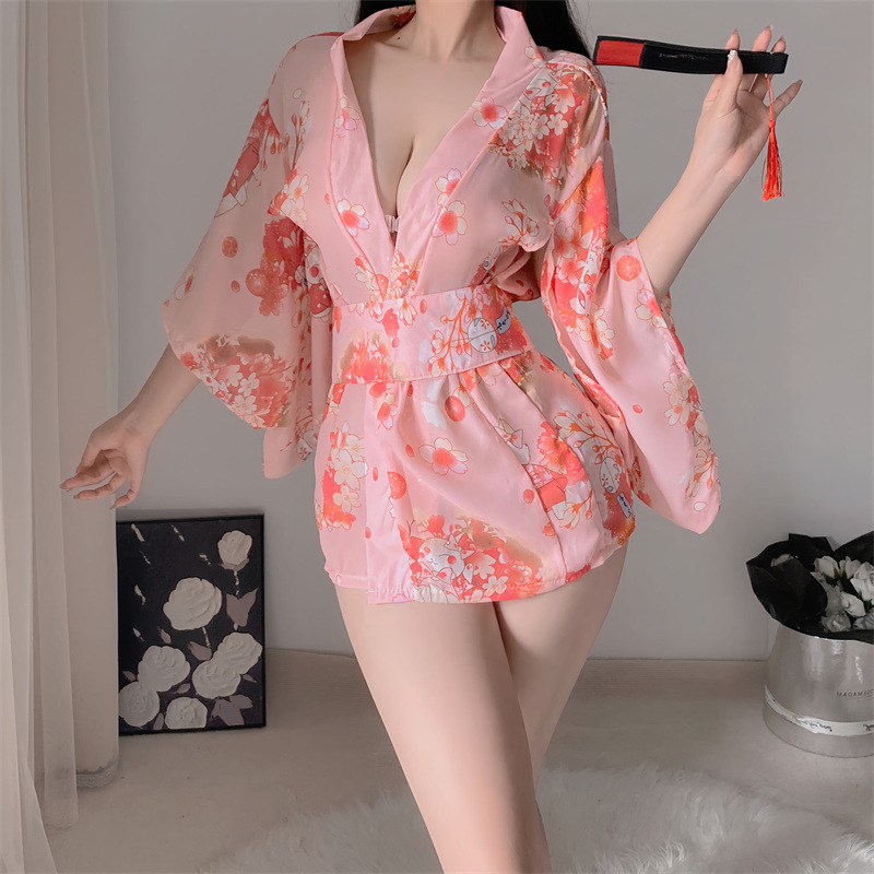 Three o’clock at night sexy lingerie new Japanese printed chiffon waist kimono passion uniform suit bathrobe