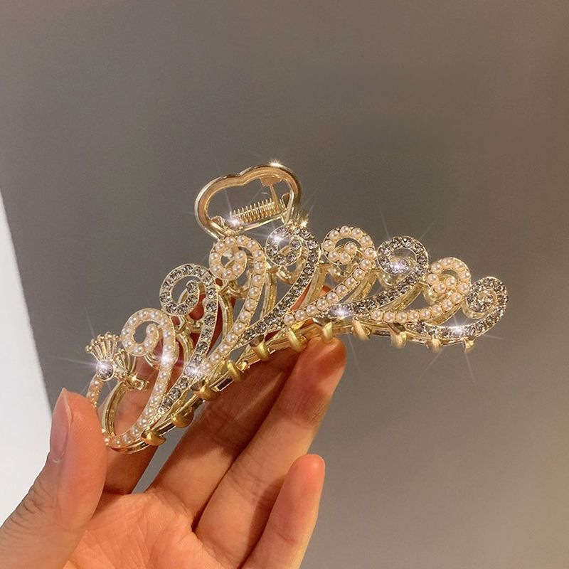 Light Luxury Rhinestone Pearl Hairpin Women’s Elegant Head Clip Large Size Hair Multi-Shark Clip Niche Design Headwear