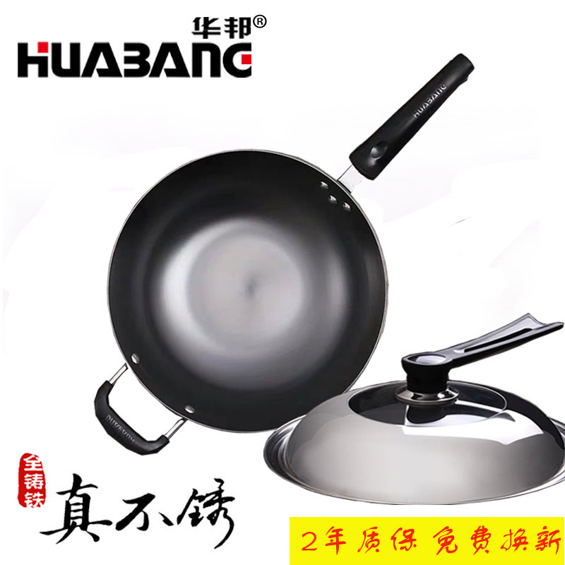 OF9D genuine stainless cast iron wok flat bottom round bottom household non-stick non-coated cast iron pot induction cooker Universal