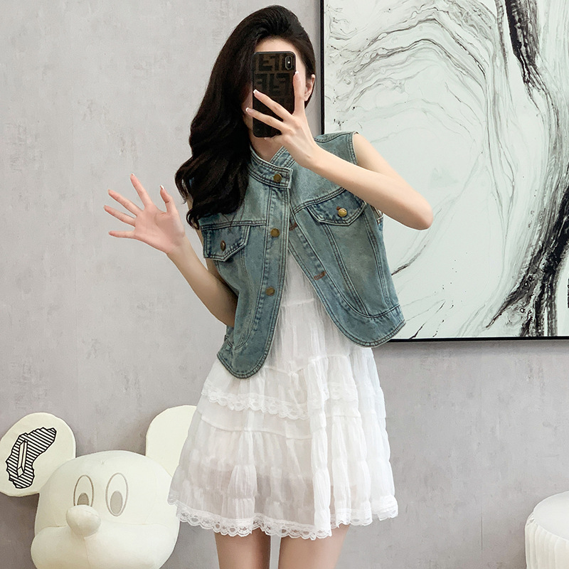 Irregular Hem Design Denim Vest Vintage Washed 2024 Summer New Sleeveless Stacked Vest Top