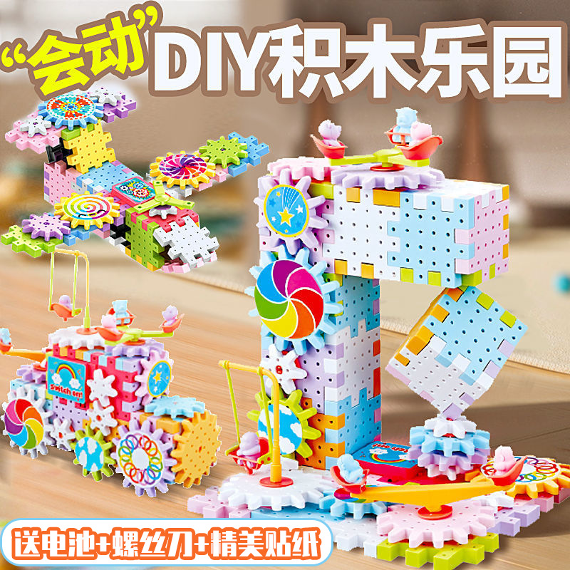 Children’s changeable Electric building blocks gear rotating building blocks toy assembling puzzle large particles suit 2-6 years old