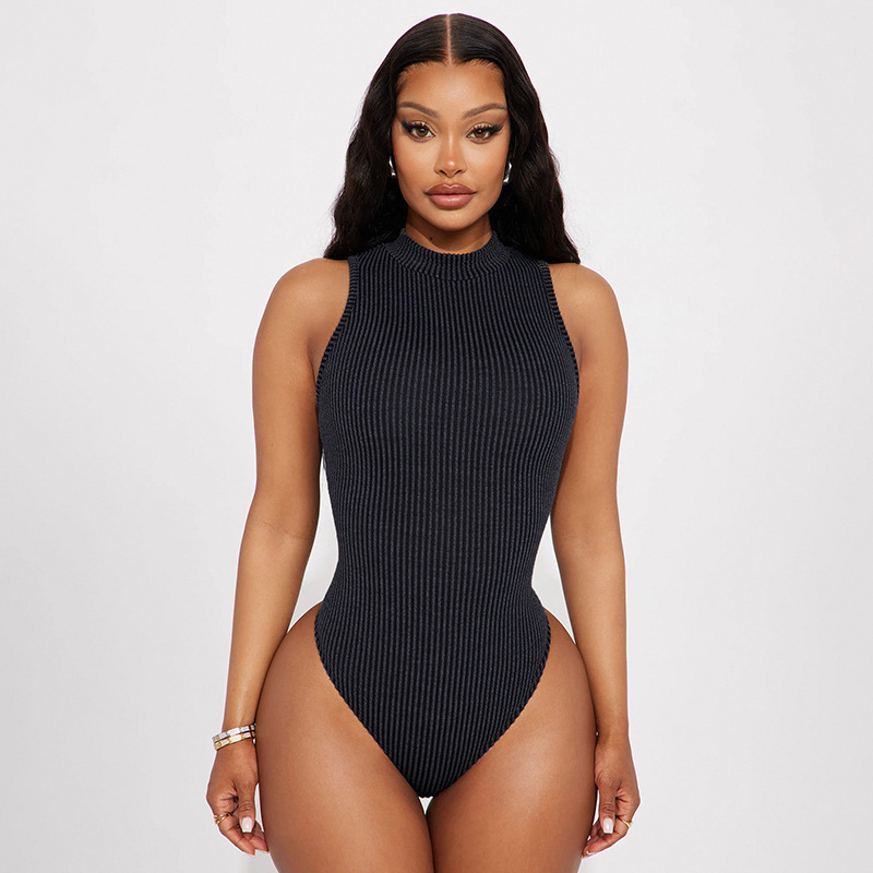 Amazon Solid Color Rib Basic All-Match Bodysuit Round Neck Sleeveless Tight Summer Outer Wear Mid-Length Bodysuit