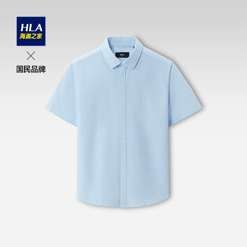 HLA non-iron point collar solid color casual short-sleeved shirt