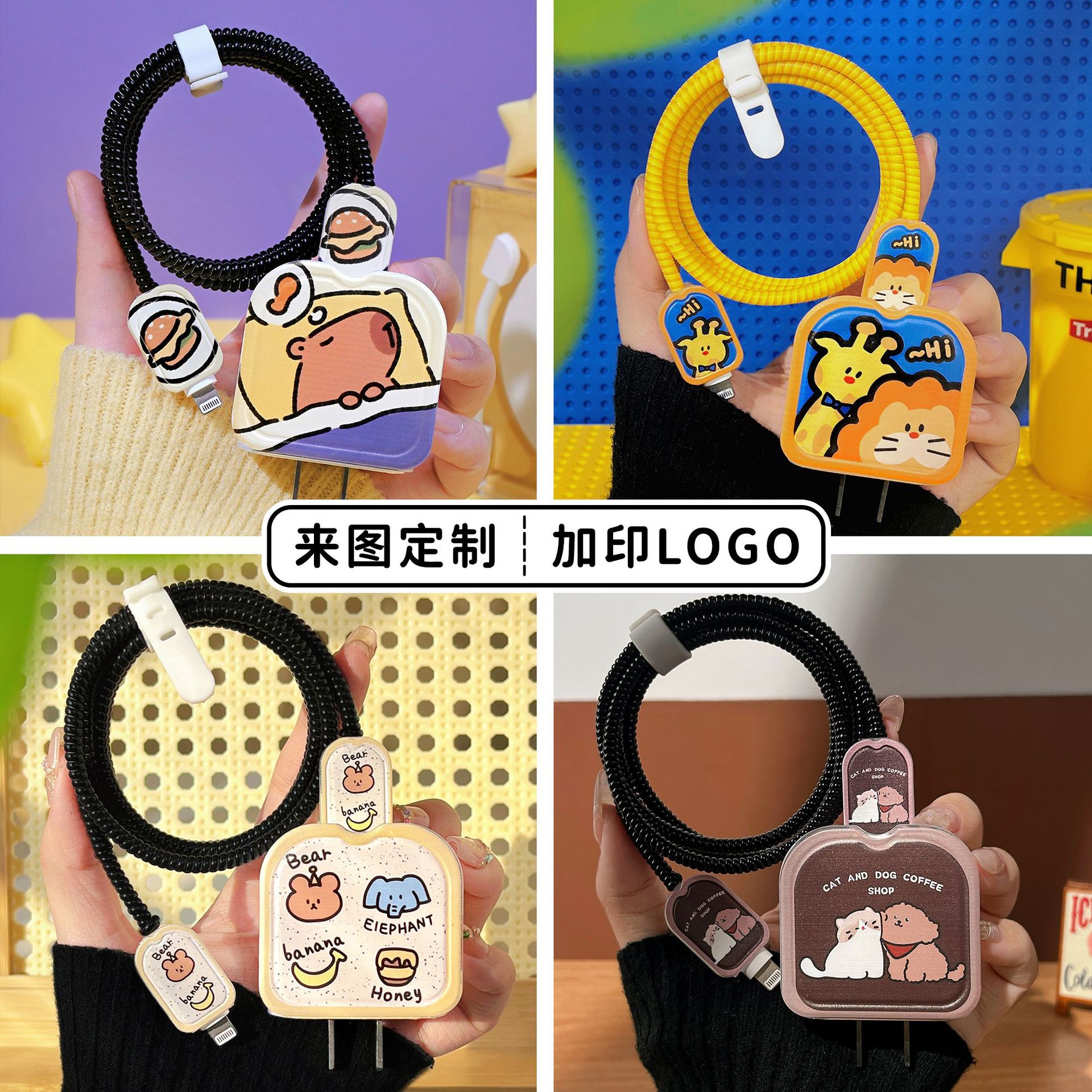Animal Tiger for Apple 15promax data cable protective cover 13 Charger 14 mobile phone iphone shell 30W