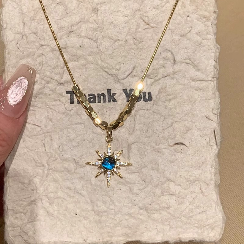 Fashionable blue eight-pointed star simple sweater chain for women zircon