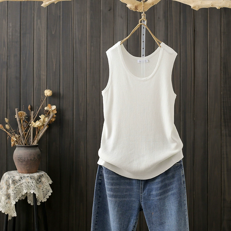 Q Knitted Threaded Base Strap Small Vest Women’s Summer Inner Contrast Color Covering Milk Black Outer Sleeveless Top