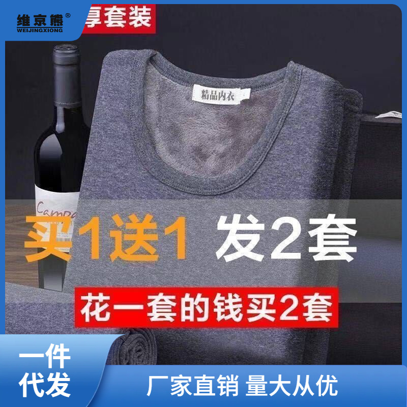 (Buy one set and get one free) men’s thermal underwear men’s fleece-lined autumn clothes long pants suit young middle-aged and elderly autumn and winter