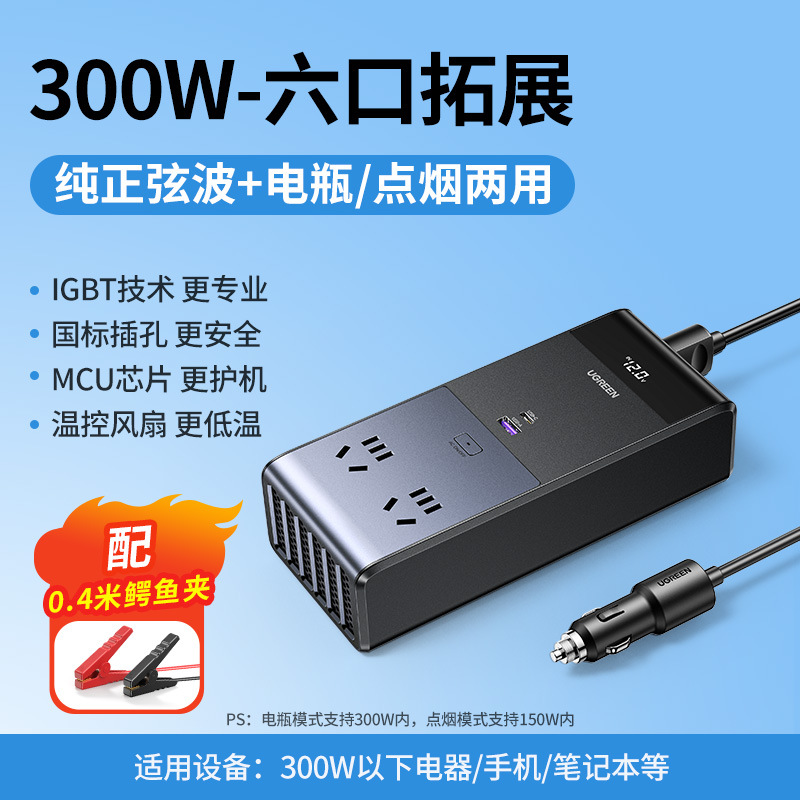 Green Union 300W car-mounted inverter converter plug 12V to 220V power socket cigarette lighter charger