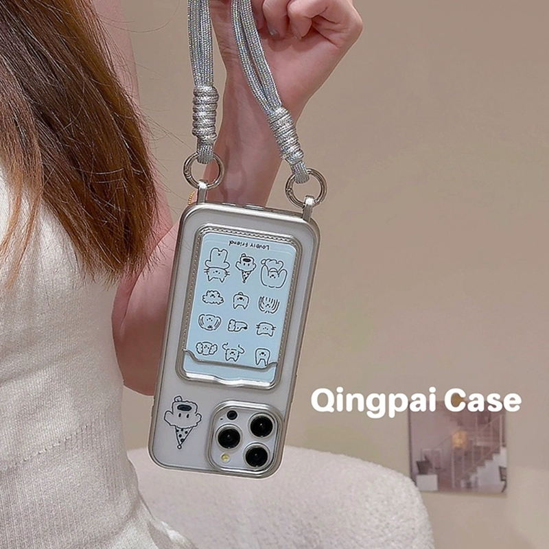 Qingpai ins cartoon puppy card bag lanyard suitable for Apple 15promax mobile phone case iphone13 new 16pro female 12 electroplating Japanese and Korean 14 creative personality niche all-inclusive hard shell