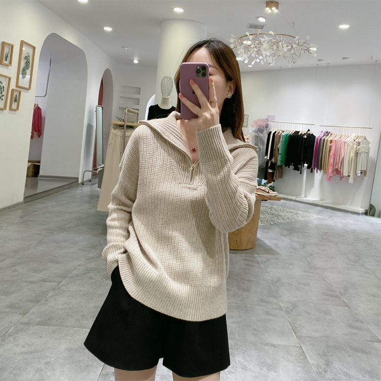Heavy thickened cashmere sweater zipper large lapel pullover long sleeve woven sweater women’s autumn and winter New Generation hair