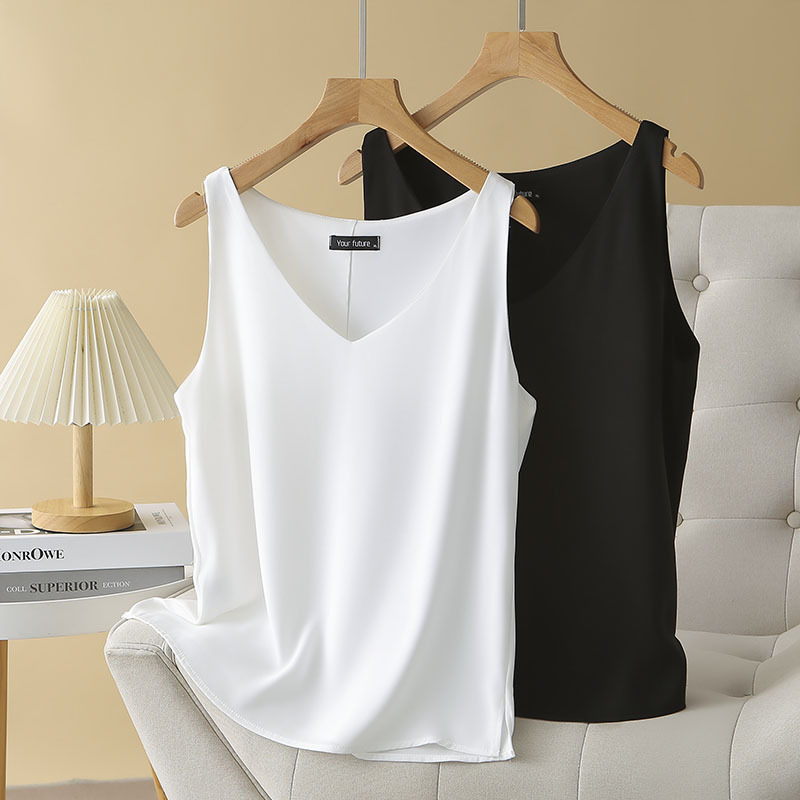 Running Volume S73 plus size Women’s Spring and Summer chubby girl Slimming Loose All-match Pullover Simulation Silk Satin Base Vest 130