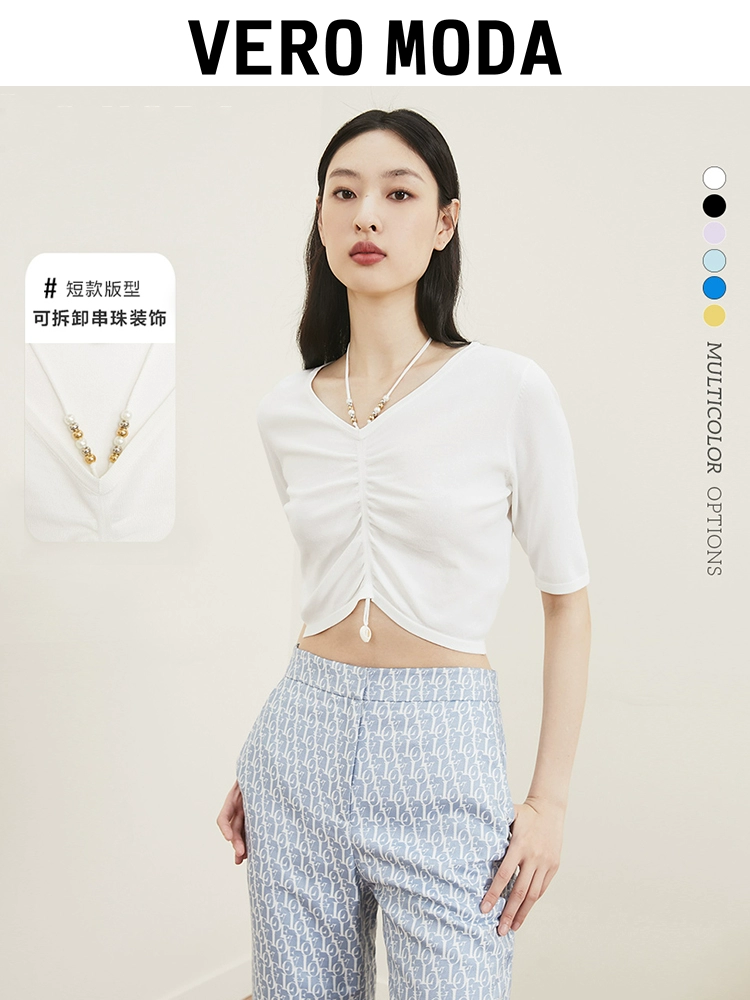 Vero Moda Outlet T-shirt autumn and winter clearance slim fit V-neck knitted hottie short-sleeved top for women