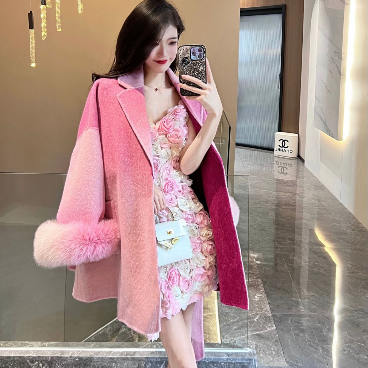 Autumn and Winter new high-end double-sided cashmere coat gradient color high-grade double-sided woolen woolen coat