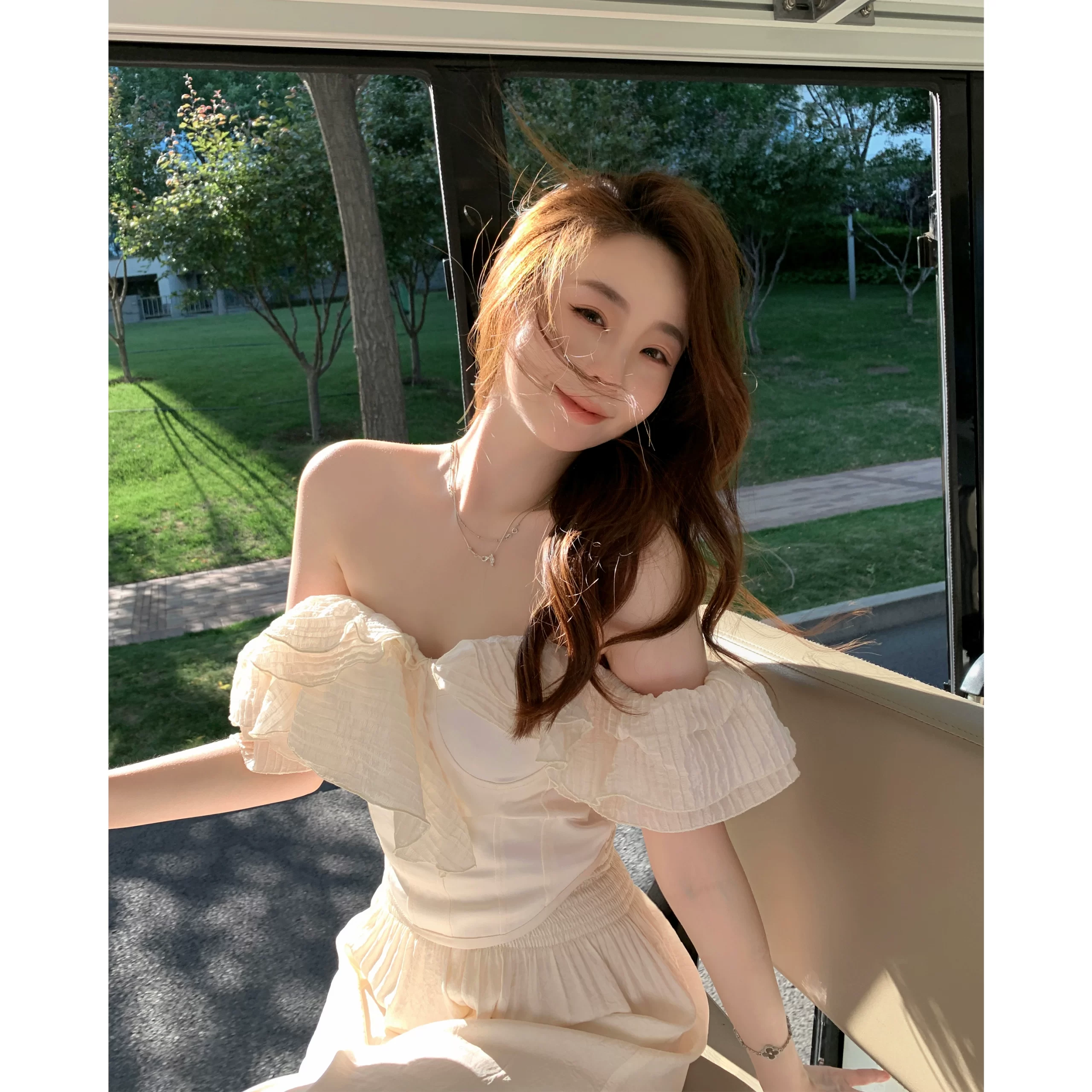 Girls suspender dress 2024 summer summer children’s ruffled flying sleeves square collar mid-length holiday skirt thin section