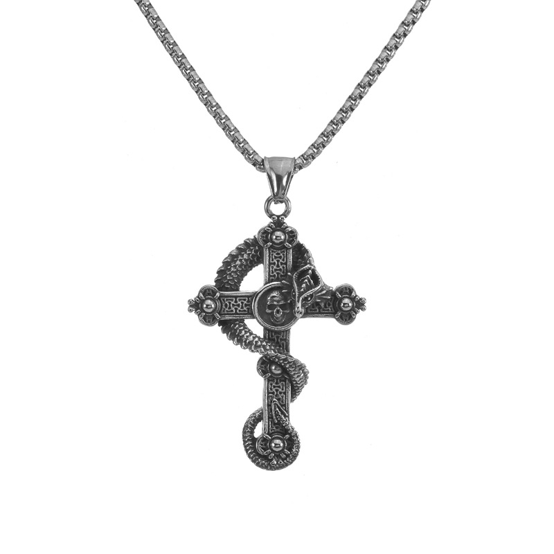 Cross-border European and American skull Dragon cross vintage pendant personalized distressed men’s domineering pendant accessories necklace