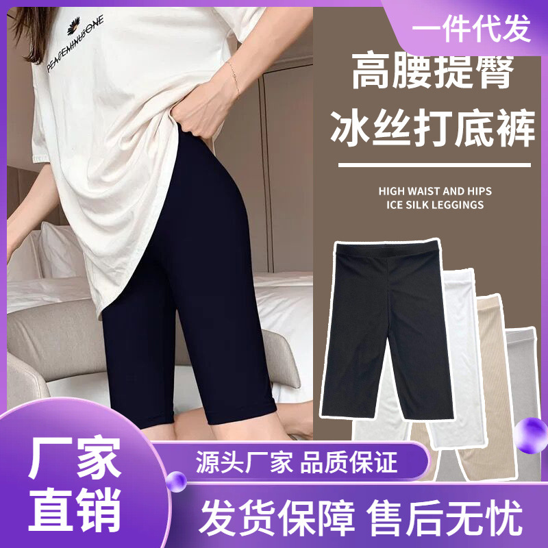 Summer plus size Five-point Wearable Ice Silk Leggings Women’s Thin Slimming Seamless Riding Pants Women’s Anti-light