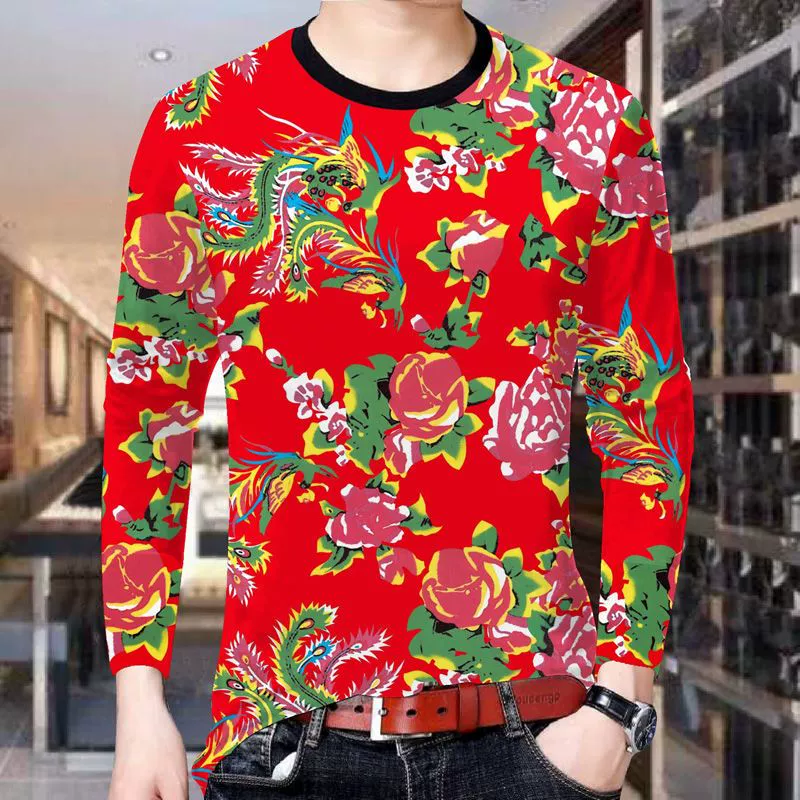 Net red big flower long pants men’s clothing spring and summer T -shirt short sleeves