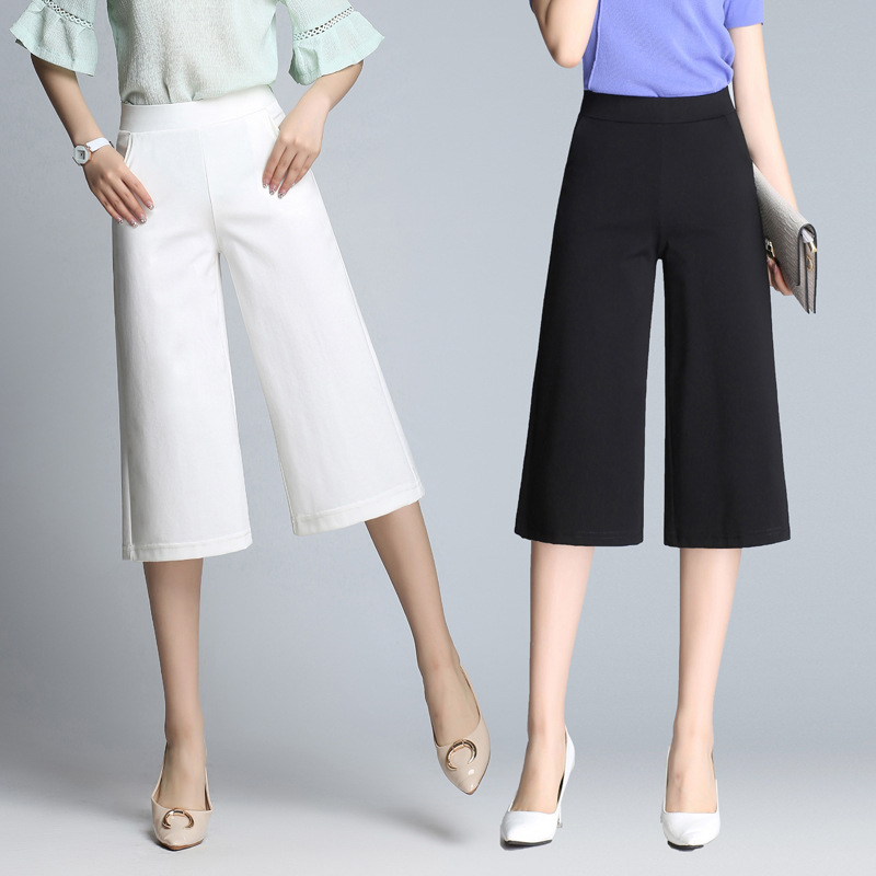 Summer New Large Size Women’s Pants Casual Wide-leg Straight-through Seven-and-Eight-point Pants Plus Weight 200 Jin European and American Loose