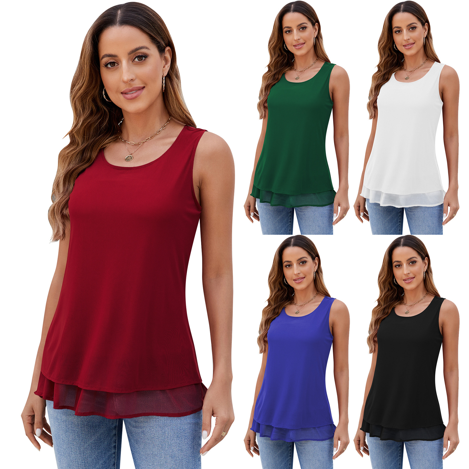 Amazon Explosions Summer Sleeveless Vest European and American Cross-border Women’s Clothing Hot-selling High Elastic Breathable Mesh Foreign Trade Top