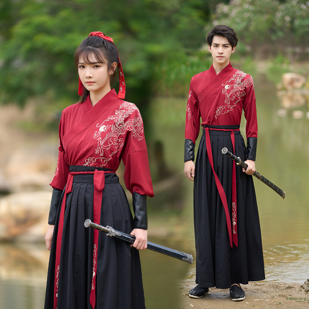 2023 original embroidered cross collar Chinese style hanfu non-ancient costume couple cp costume martial arts clothing suit