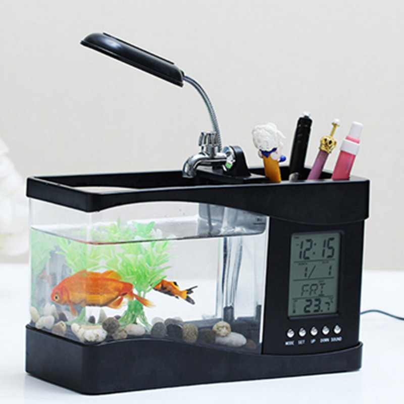 1.4 liter desktop mini fish tank aquarium USB colorful LED night light aquarium children gift Marine toys