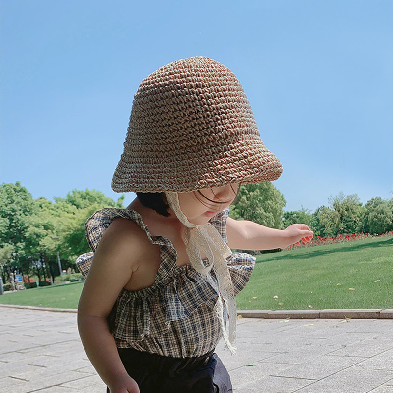 Children’s Straw Hat Korean Summer Beach Sunscreen Baby Stylish Hat Instagram Girls Baby Travel Sunscreen Hat