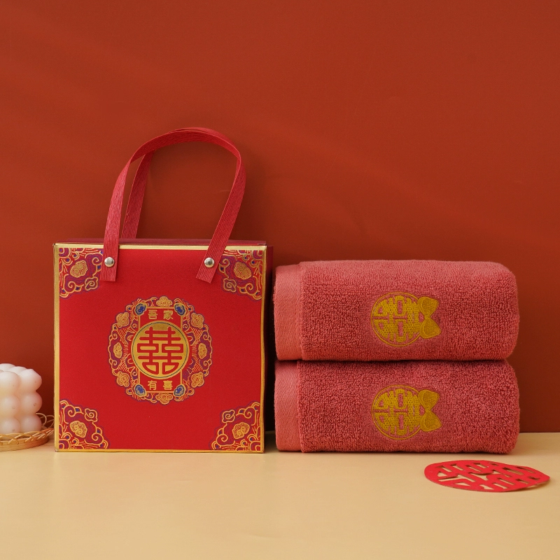 Red towels Married a pair of wedding pure cotton happy wedding gift boxes with gifts to return to face, wash face, family festive wedding